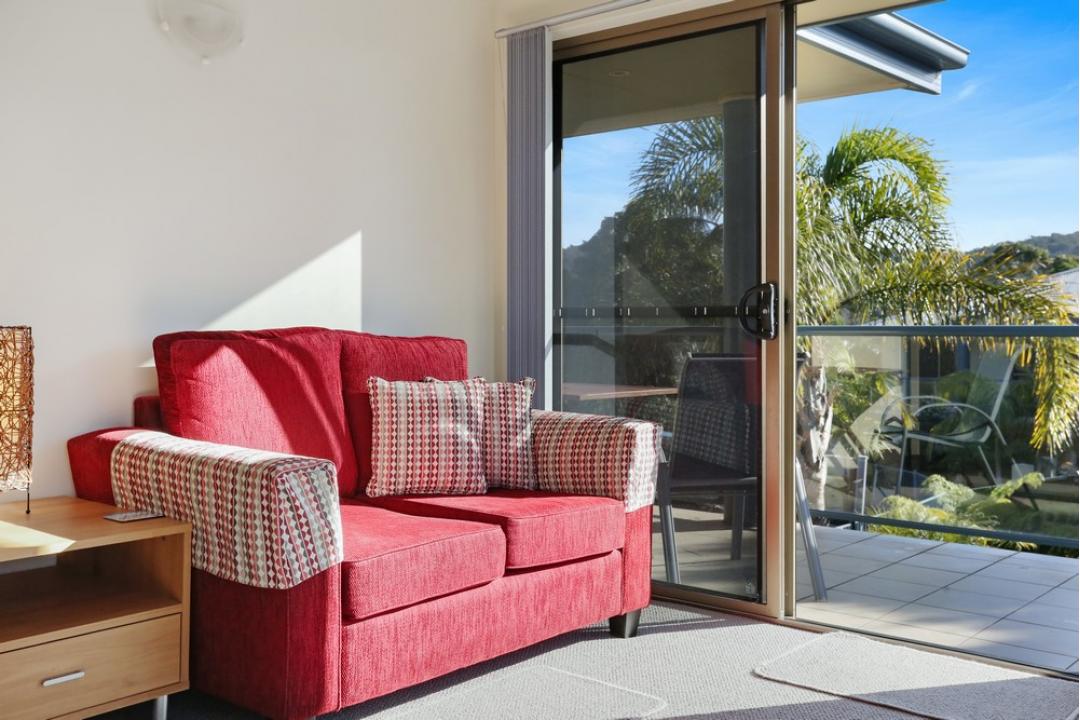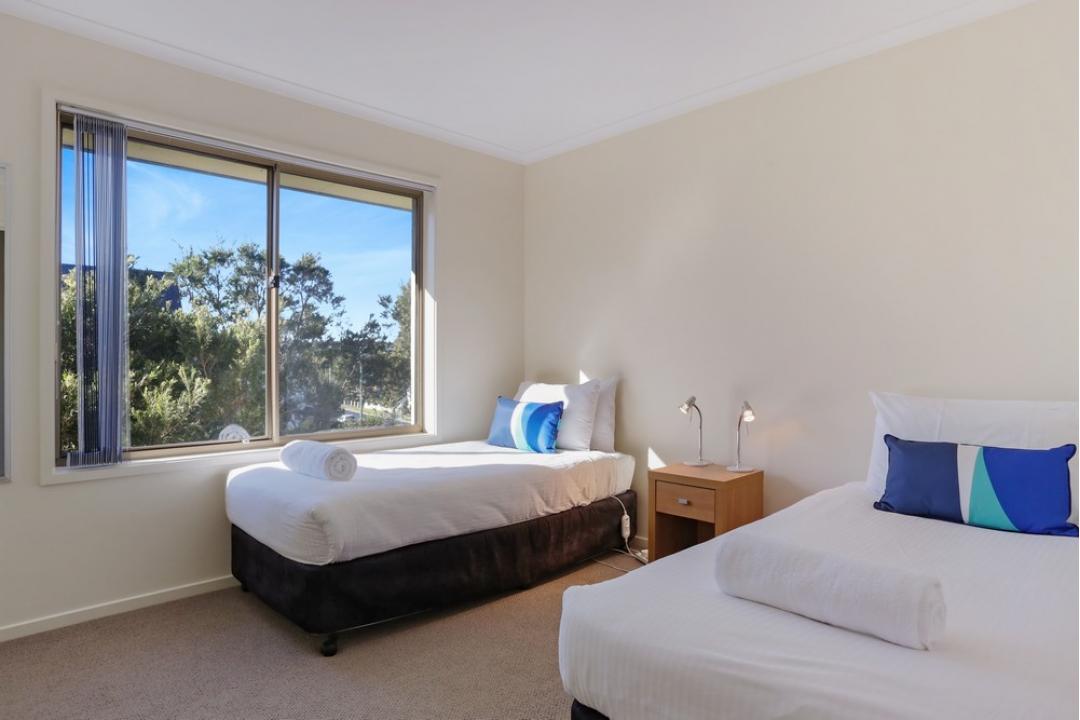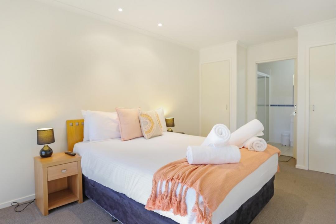 The two-bedroom apartments at Sorrento Merimbula offer spacious, self-contained accommodation with modern furnishings.